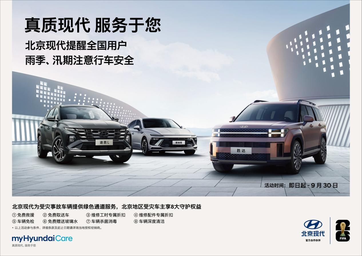 北京现代特别提醒全国用户,在雨季、汛期期间要注意行车安全。同时,在保障自身安全的情况下,对需要帮助的车主朋友提供支援,呼吁大家在困难面前团结互助,共克时艰。