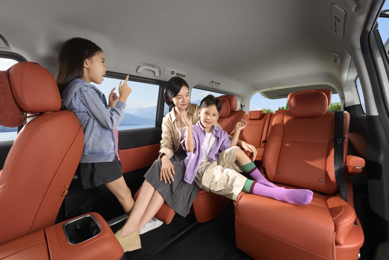 越级空间,三排都是商务舱,全场景从容应对。锐胜M8以5317mm同级领先车身、3200mm超长轴距,构建起宽敞舒展的内部空间;610mm三排腿部空间与1270mm行李舱空间,配合6180L车内总容积,为每位乘客带来商务舱级的乘坐体验。锐胜M8座椅支持7种空间组合,满足商务接待、家庭出行、高端营运及户外休旅的多元化需求。