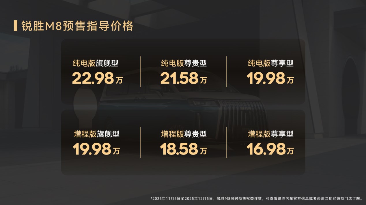 锐胜M8开启预售,CLTC综合续航1420km