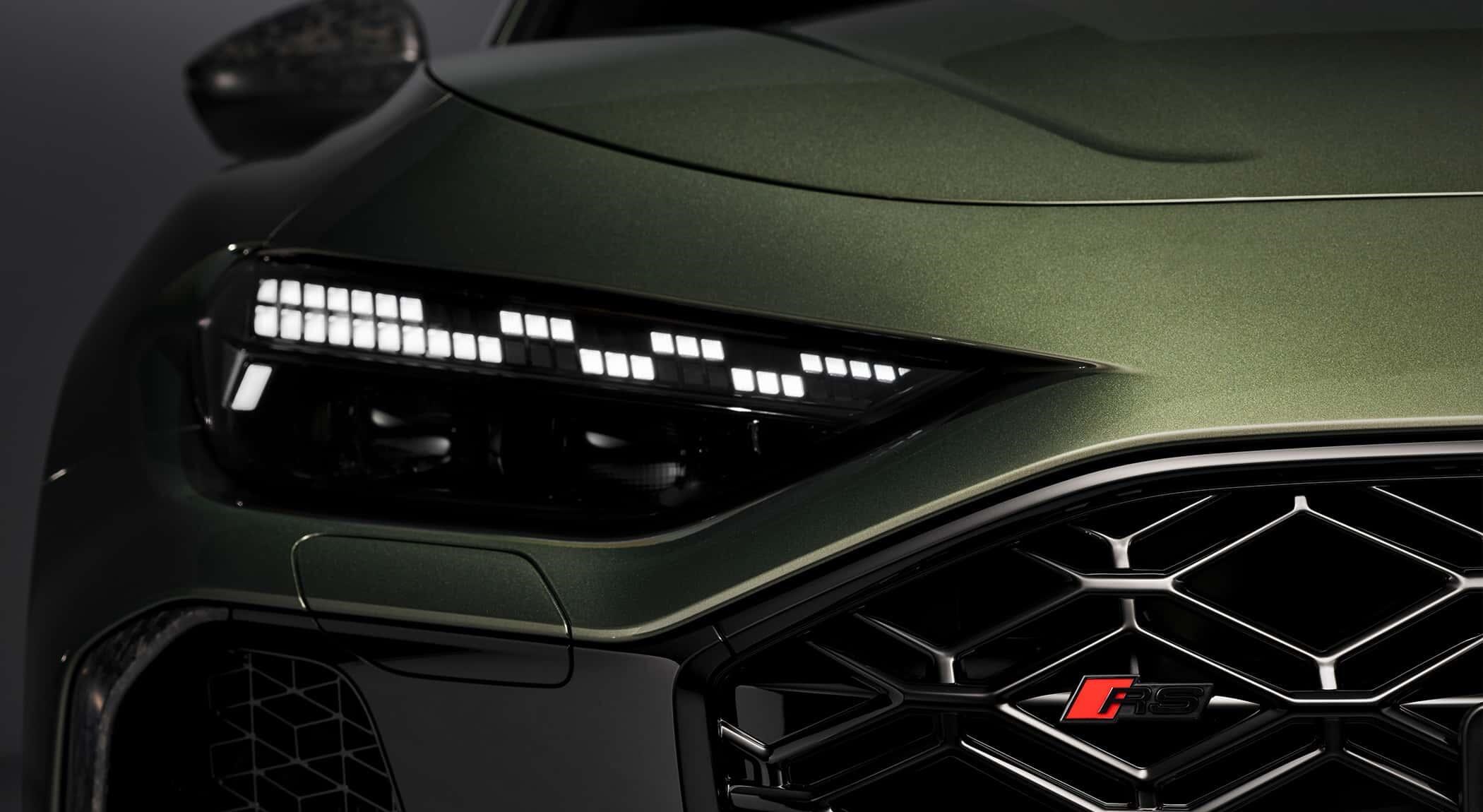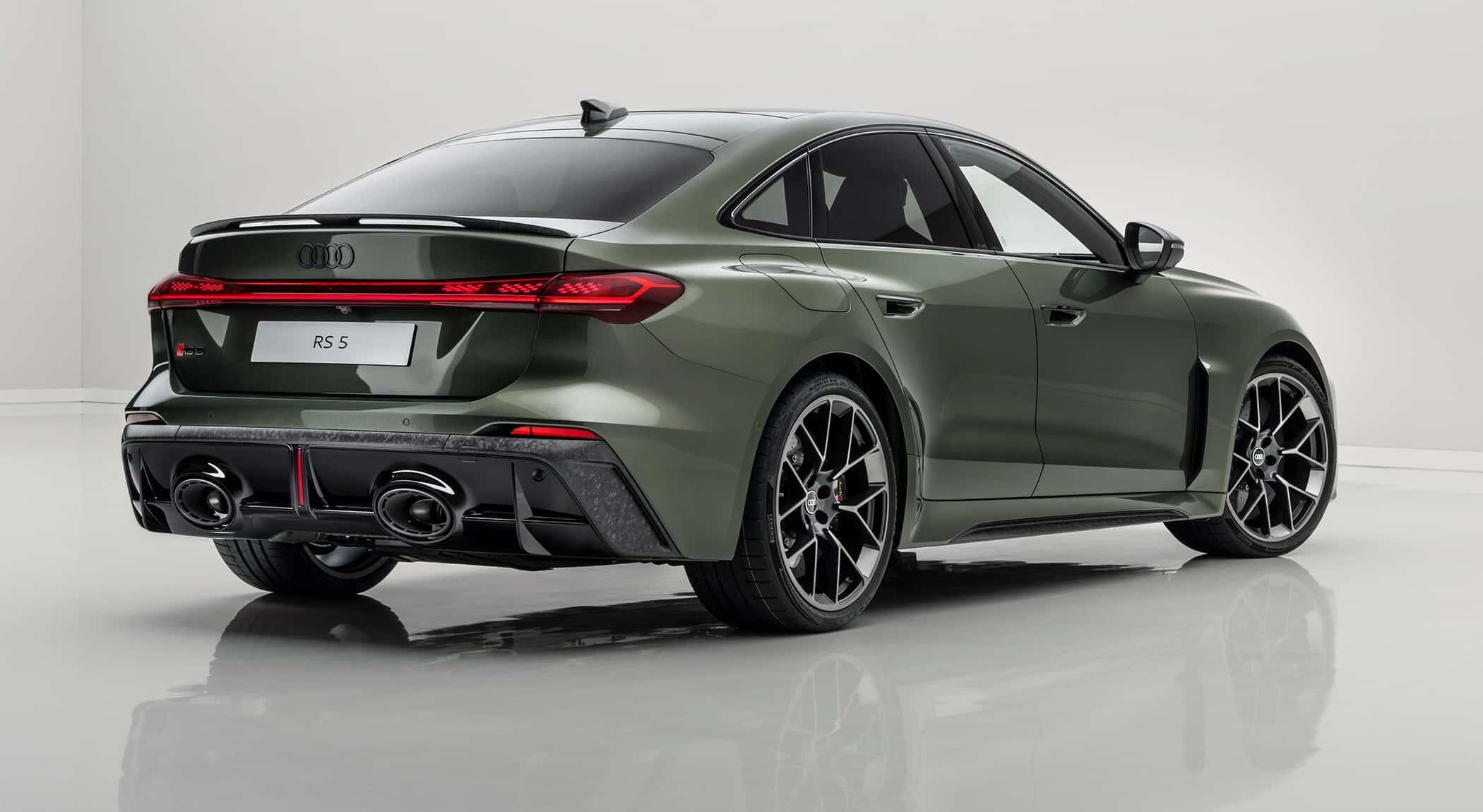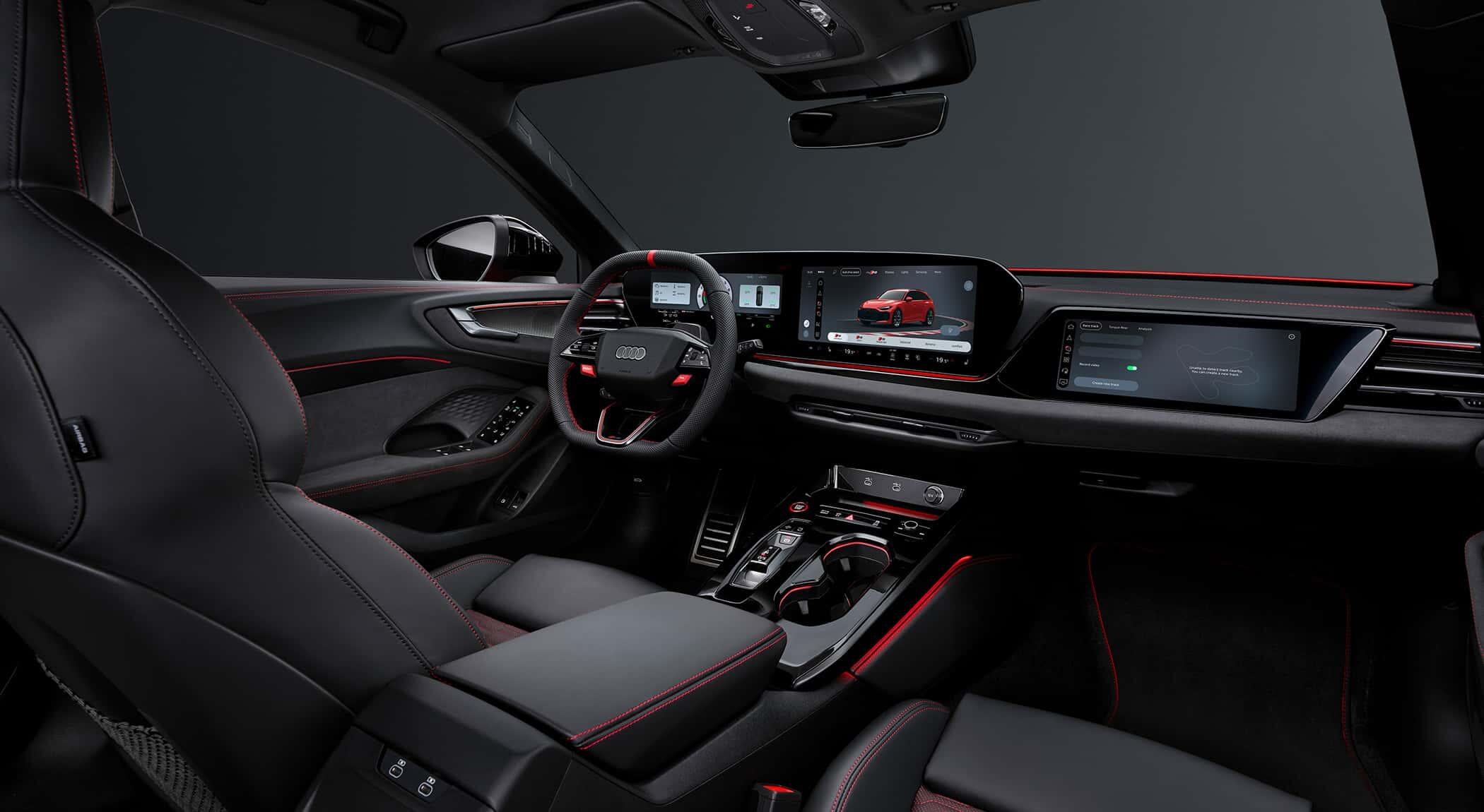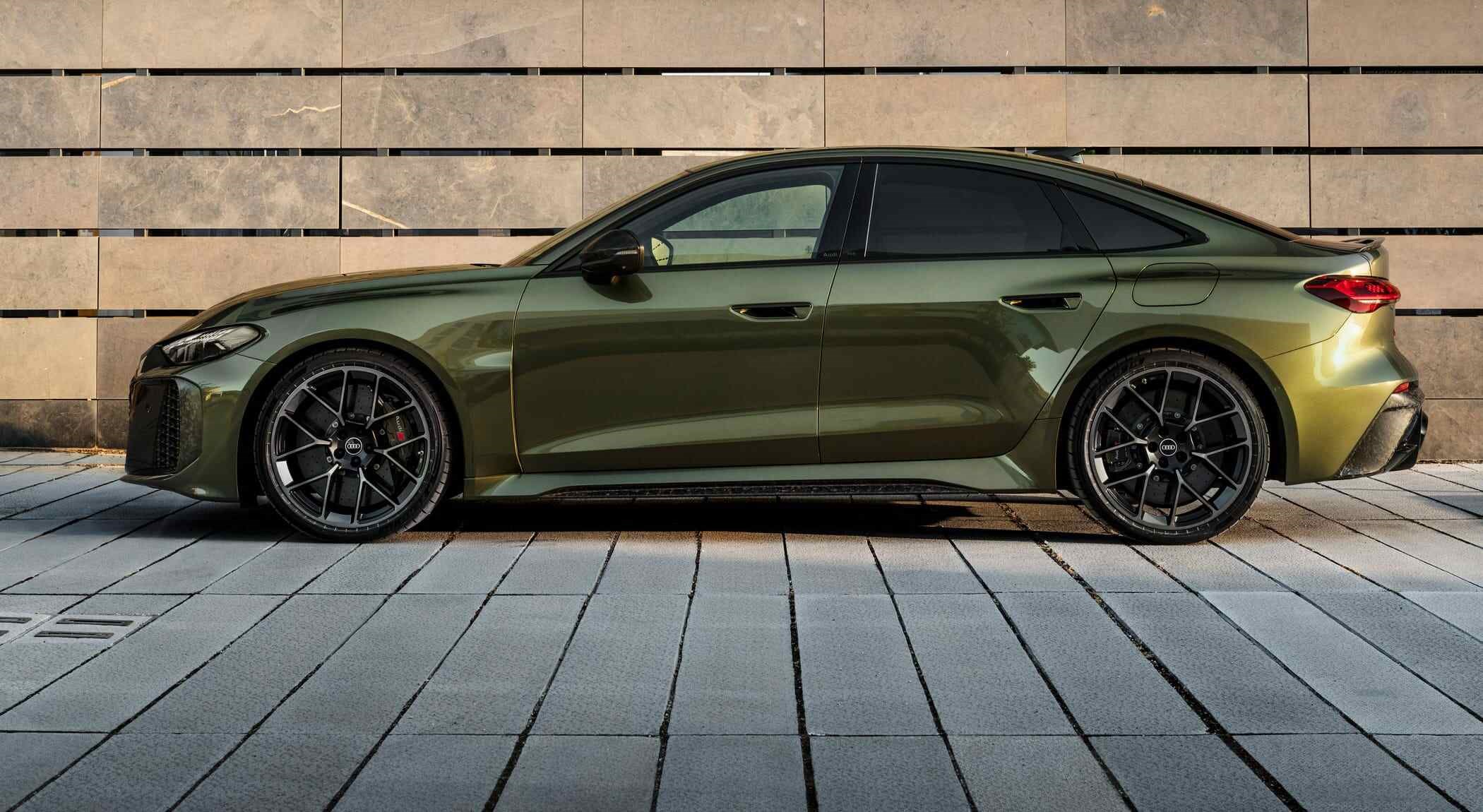 前脸为蜂窝状Singleframe格栅,与Air Curtain进气道融合。尾部扩散器内嵌双椭圆排气管,中央红色垂直反光条致敬品牌赛车传统。新车标配9种车漆,可选Audi Exclusive定制。而运动套件(约1万欧元)包含:Bedfordgreen专属涂装、古铜色刹车卡钳、21英寸双色轮圈、最高车速提升至285公里/小时、黑色排气尾管以及碳纤维空气动力组件。