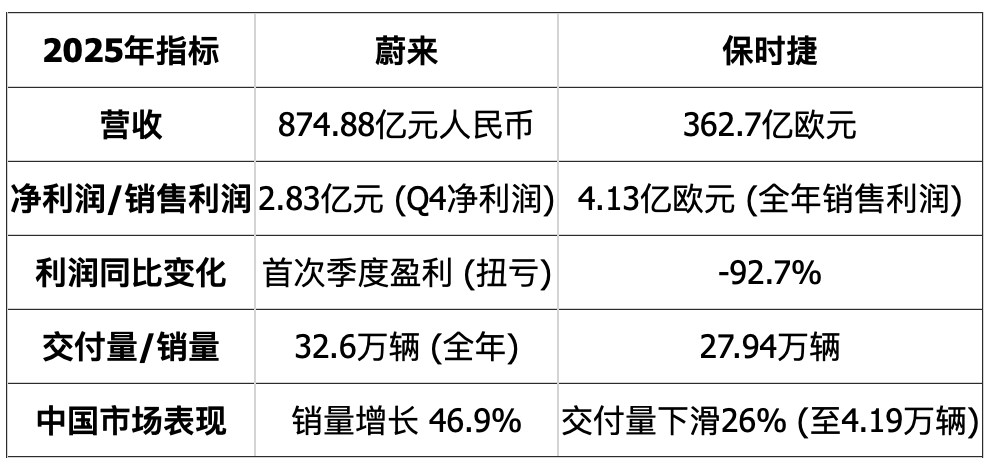 蔚来与保时捷的业绩分野,本质上是两种核心竞争逻辑的碰撞。