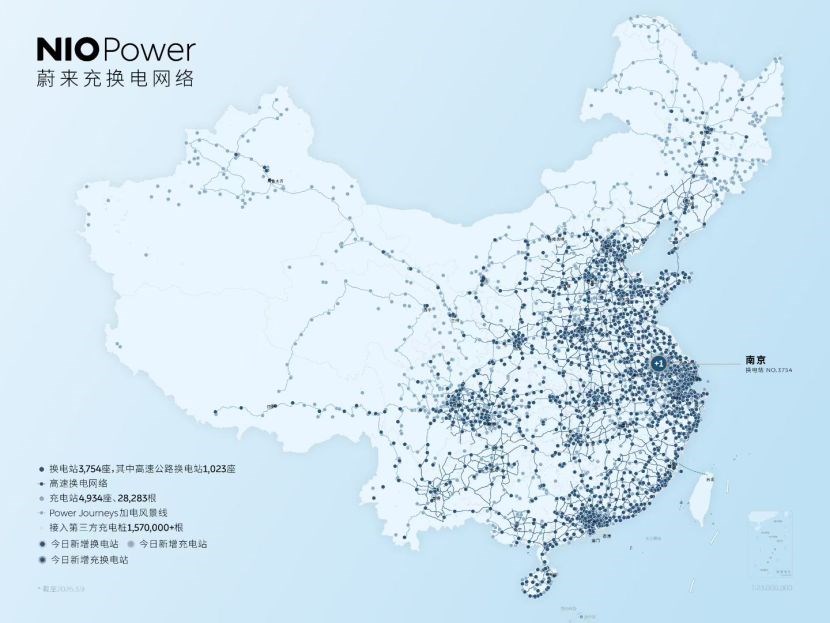当然,蔚来也并不是只有换电模式,蔚来的充电网络也非常周到。目前蔚来在全国布局了28000多根充电桩,在一些热门景区和度假型酒店,基本也都有超充桩和目的地桩,且不仅限于蔚来用户使用。