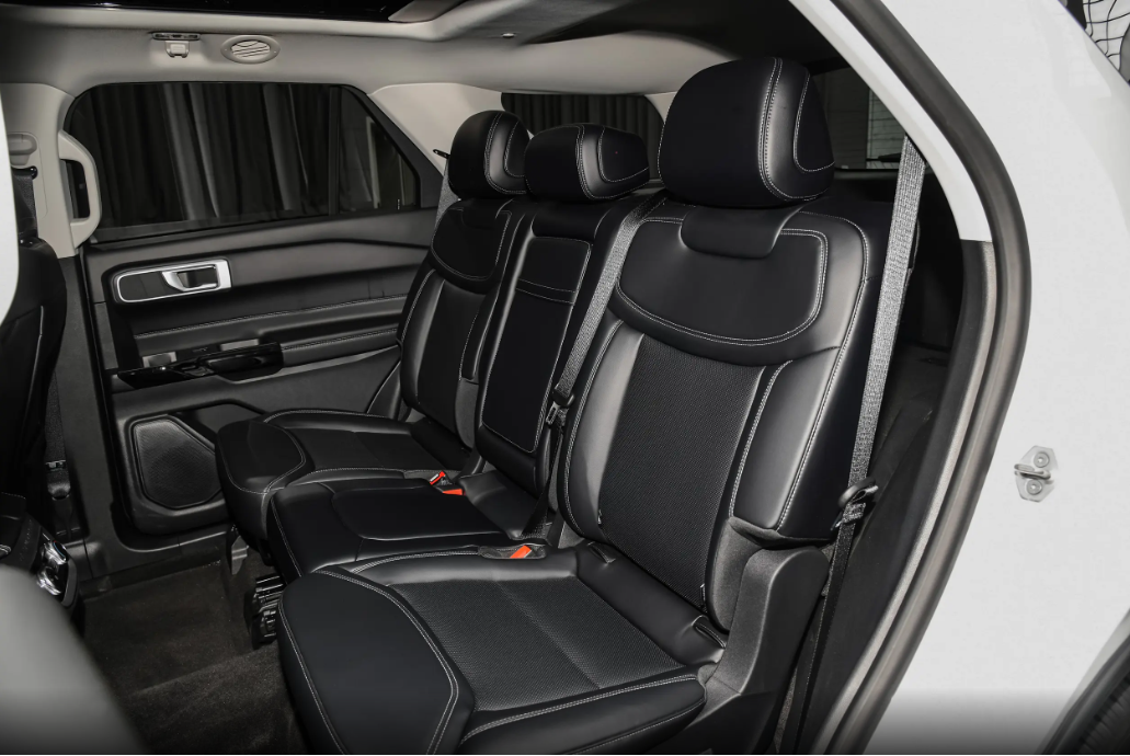 乘坐空间方面,毕竟咱们普通人买车,大部分时间还是用来接送孩子、买菜、全家出游的。福特探险者的空间真的没话说,车长超5米,轴距超3米,车内可使用空间面积超过6㎡。我180cm的身高,不管坐前排还是后排,头部和腿部都有富余,不会觉得挤得慌。后排坐三个成年人也不挤,孩子在后排随便翻身、放儿童安全座椅,也不占地方,这点对多口之家太重要了。而且全景天窗面积超过11.1㎡,能够提升车内通透感。
