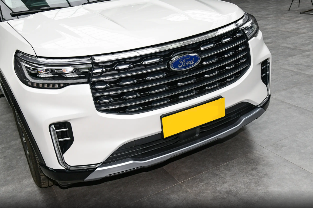 这次深度试驾,先说说福特探险者的外观,典型的美式SUV气场,很对我胃口。整体线条干净利落,造型稳重大气,一看就是家用、撑场面都不怯场的车型。前脸是大尺寸格栅,搭配矩阵式镀铬装饰,很有精致感。两侧是分体式LED大灯,支持自动点亮、自动远近光,中间还有灯带相连,白天晚上辨识度都特别高。格栅下方两侧做了导流设计,中间是梯形进气口,上面还有可闭合饰条,不光好看,还能优化风阻,实用性拉满。