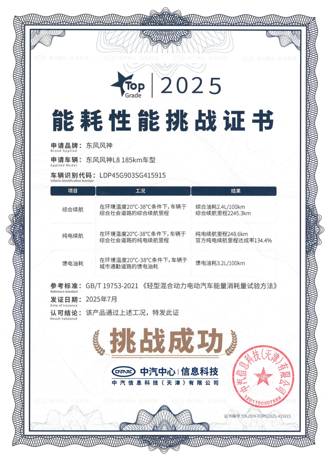 同时,丰配友认为一台车的续航能力要足够强,这能减少跨城出行的补能频次,让行程更从容。风神L8在续航方面也表现十分优秀,中汽中心权威实测综合续航可达2245km,更是完美匹配了马拉松式的极致耐力,就算从从高原训练基地跨省到赛场,一次满油满电就能轻松覆盖,让丰配友在赶赛程、跨城训练时都格外从容。对普通家庭用户而言,这套动力系统兼顾了强劲性能与燃油经济性,中汽中心实测综合油耗仅2.4L/100km,日常通勤省油省心,长途出行从容不迫,全面满足家用全场景出行需求。
