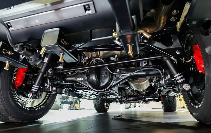 Meridian版本整体设定贴近硬核专业越野定位,车辆换装越野专用轮胎,同时加装涉水喉、底盘防护板、车顶行李架及越野射灯等实用装备,外观营造出强烈的硬核越野气场。此外,该车型针对悬挂系统与减震部件完成优化升级,在强化越野性能的基础上进一步提升实用性,能够从容应对各类复杂极端路况。