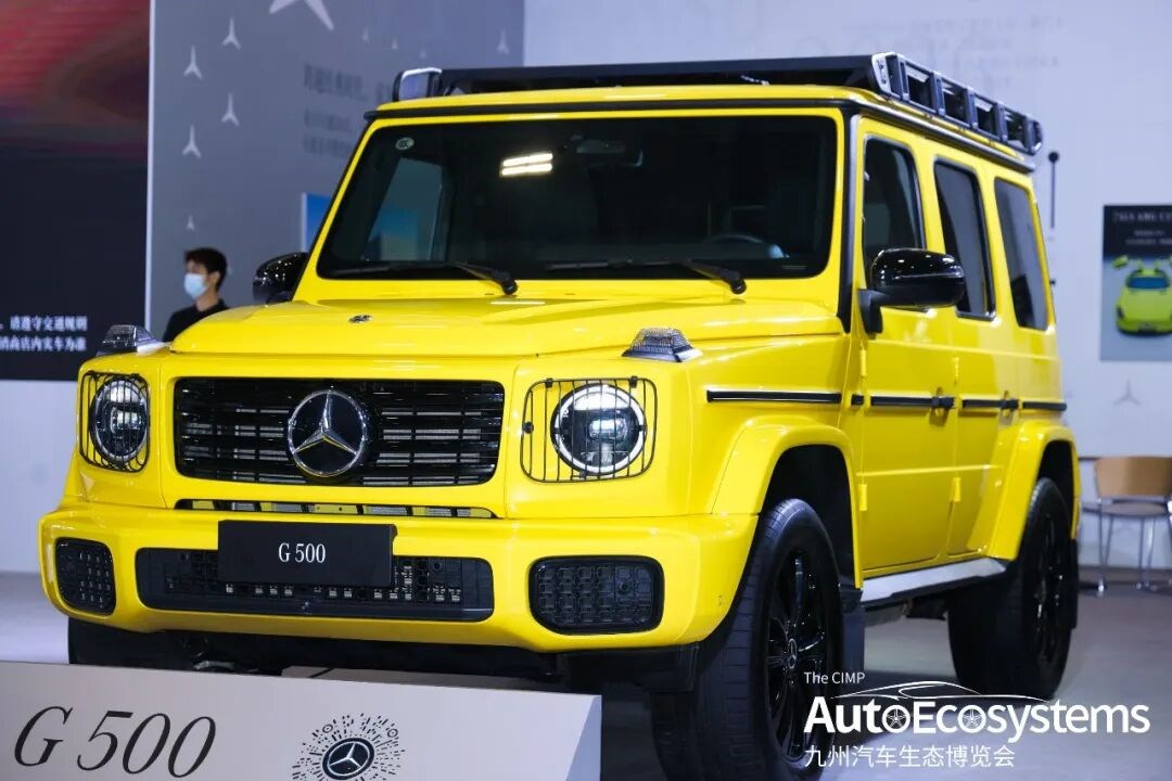 奔驰带来时下热门的AMG车型GT40 和CLE 53 ,以及G500定制版专业越野套装版。这款车采用醒目的电气石黄色车漆,配备原厂专业越野组件,包括大灯保护网、车顶行李架、黑色运动轮毂等,强化了硬派越野气质。