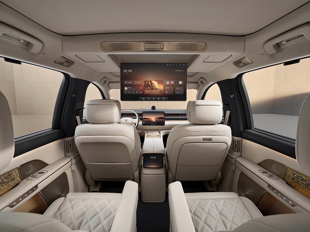 尺寸是最大的诚意。5365mm车长、3250mm轴距,这个数据不仅全面超越ES8,甚至逼近劳斯莱斯库里南。对于一台主打“商务兼顾家用”的旗舰SUV来说,超过3.2米的轴距意味着第三排不再是“小板凳”,而是真正能长途乘坐的空间。
