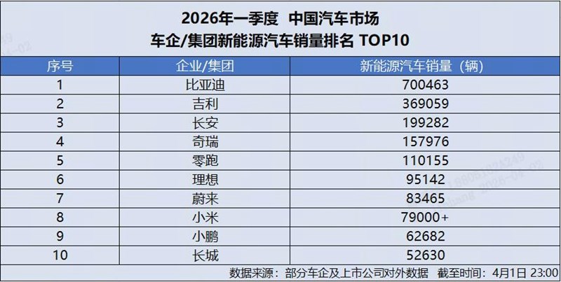 4 月 1 日,比亚迪发布 2026 年 3 月产销数据,单月总销量达300222 辆,强势突破 30 万辆大关,再添荣耀战绩,斩获中国车企销量冠军,并连续 58 个月蝉联中国新能源汽车销量冠军,持续稳固行业龙头地位。截至目前,比亚迪新能源汽车累计销量已超1580 万辆,一季度累计销售 700463 辆,以硬核数据印证技术与规模双重实力。