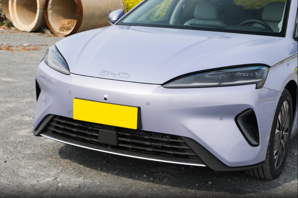 其次就是外观设计上,海豹07EV的车头是封闭式格栅,看着简洁现代,还能降低风阻。机盖有凸起的线条,从A 柱一直延伸到格栅,看着更有力量感,也不显笨重。大灯是细长的箭羽样式,和格栅连在一起,带透镜和LED日行灯,科技感很足。前包围两边的导风槽是真有用的,能梳理气流,下面三段式进气口也兼顾了散热和风阻。