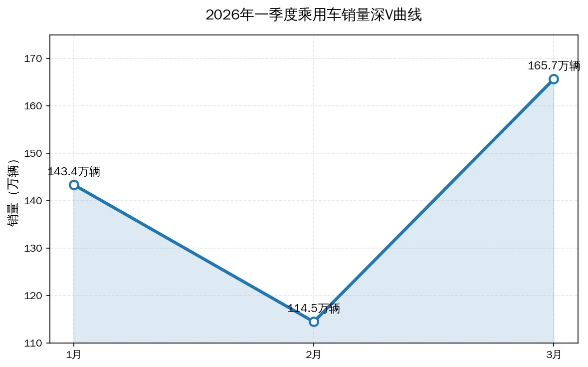 2026年的中国汽车市场,用一个词来概括就是“冰与火”。一季度市场走出了一条教科书式的“深V曲线”——1、2月受春节假期和消费观望影响,市场跌入冰点;3月在政策托底和新车密集轰炸下,环比暴涨64.5%,强势反弹。最终,一季度乘用车零售销量达到423.5万辆,同比下降17%。