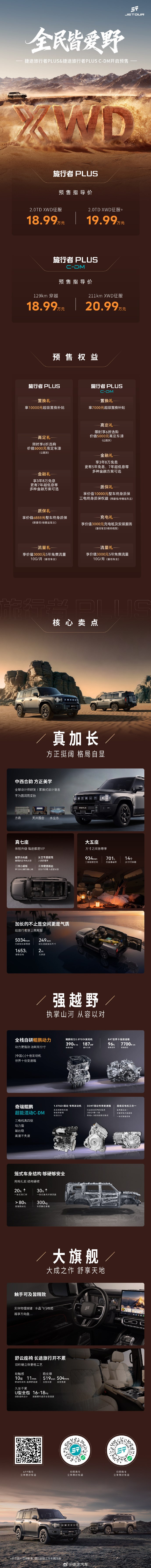 4月9日,买车网Buycar获悉,捷途汽车捷途旅行者PLUS和旅行者PLUS C-DM正式开启预售,旅行者PLUS预售价区间为18.99万元-19.99万元,旅行者PLUS C-DM预售价区间为18.99万元-20.99万元;捷途旅行者C-DM华为乾崑智驾版预售价区间为20.99-21.99万元。