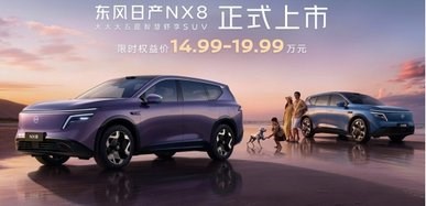 4月8日,东风日产在广州举办发布会,东风日产NX8正式上市,新车定位“大大大五座智慧舒享SUV”,提供增程、纯电两大动力、六大版本,上市限时权益价14.99万元-17.49万元。此外,官方还推出了NX8品牌大师版,限时权益价19.99万元。