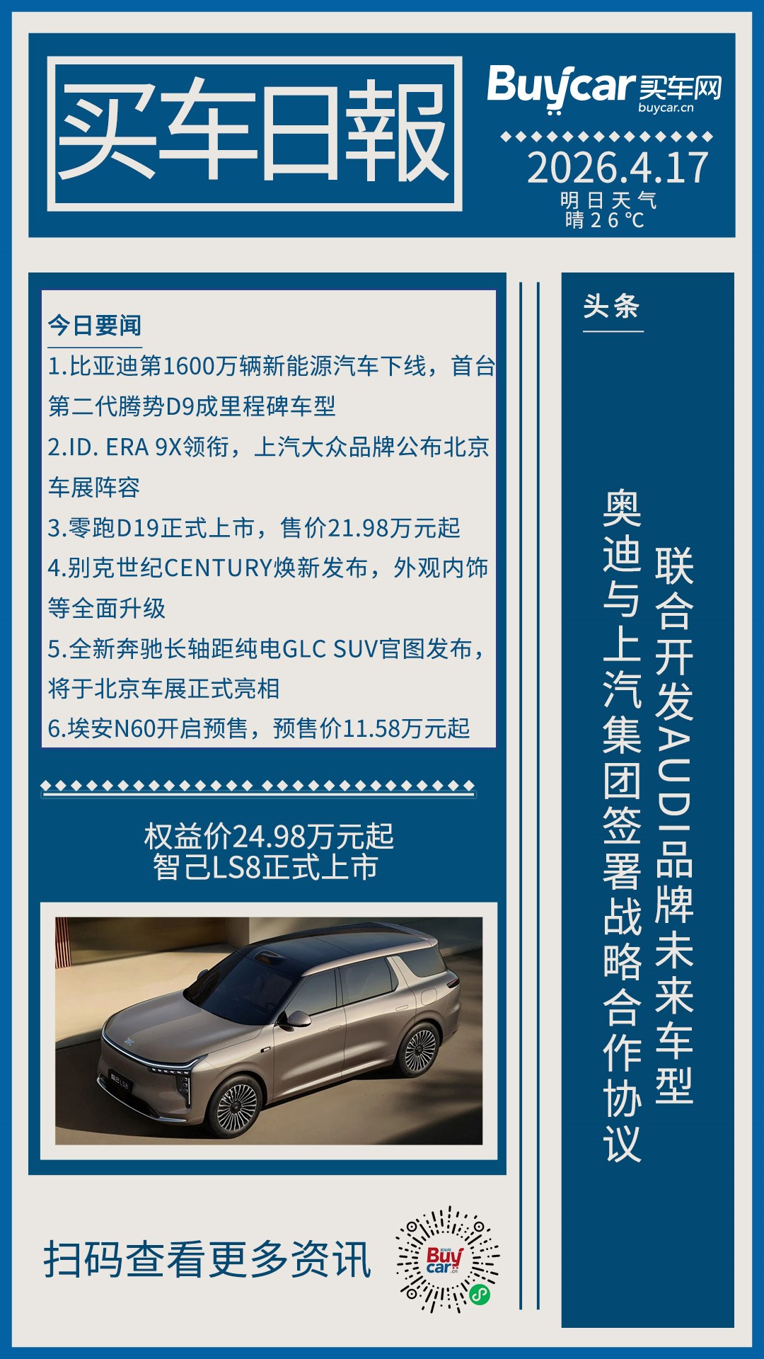 买车日报-20260417-奥迪与上汽集团签署战略合作协议,联合开发AUDI品牌未来车型